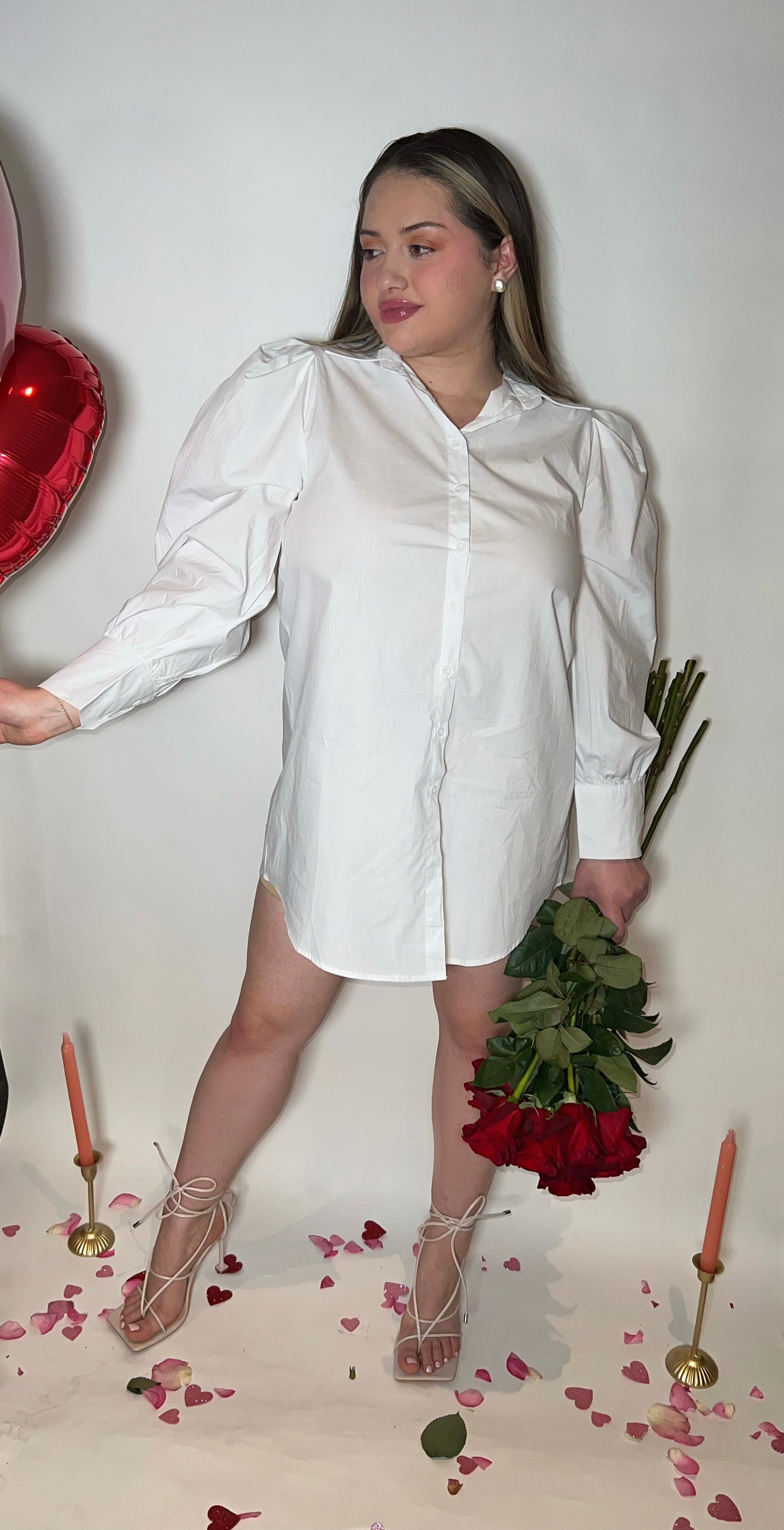 Enhance your wardrobe with the ultimate must-have: a classic white button-up dress that exudes confidence and beauty. A timeless piece that will elevate your style game.