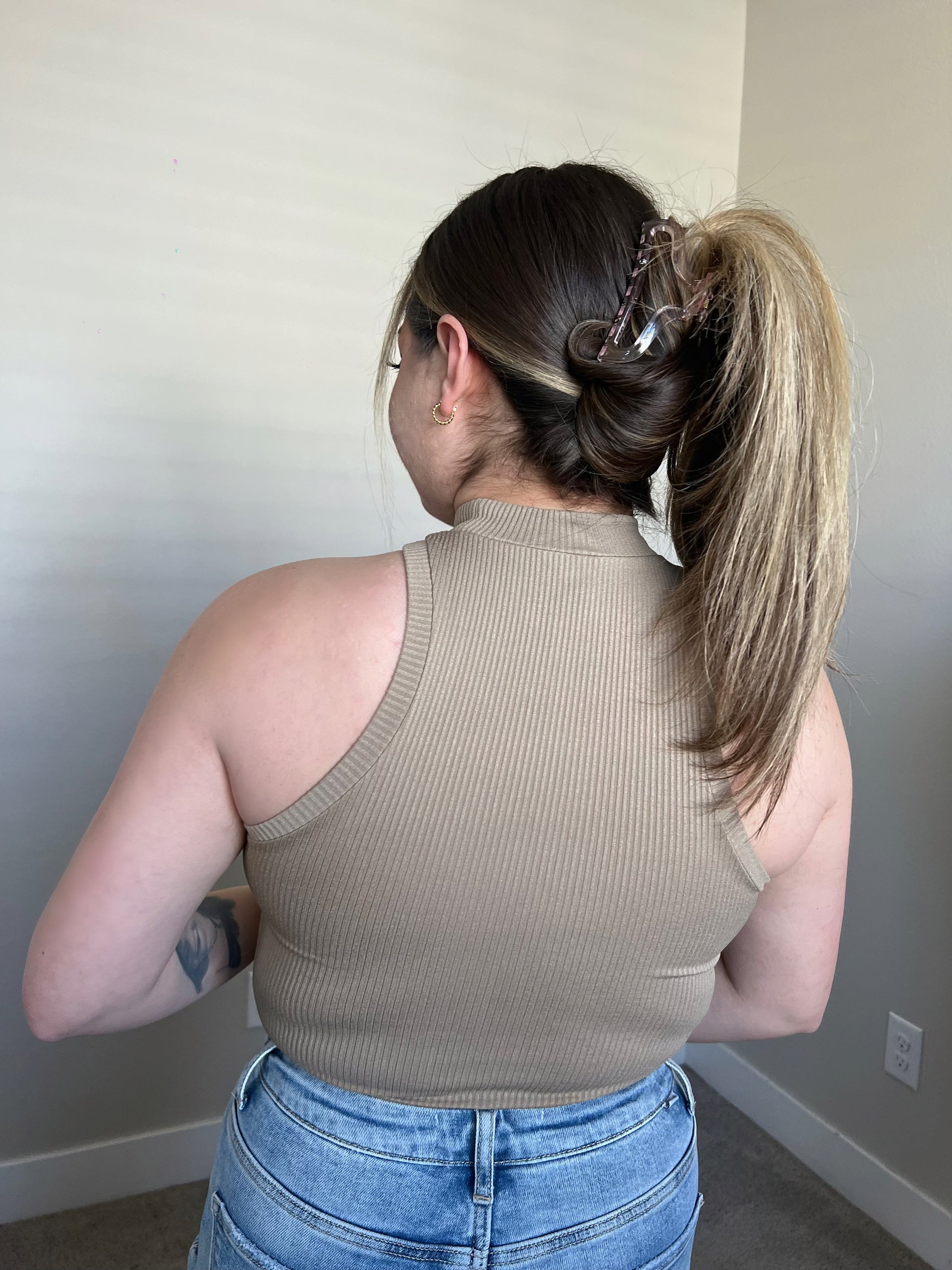 - This Mockneck Top features a sleeveless design and a stretchy, comfortable fit.