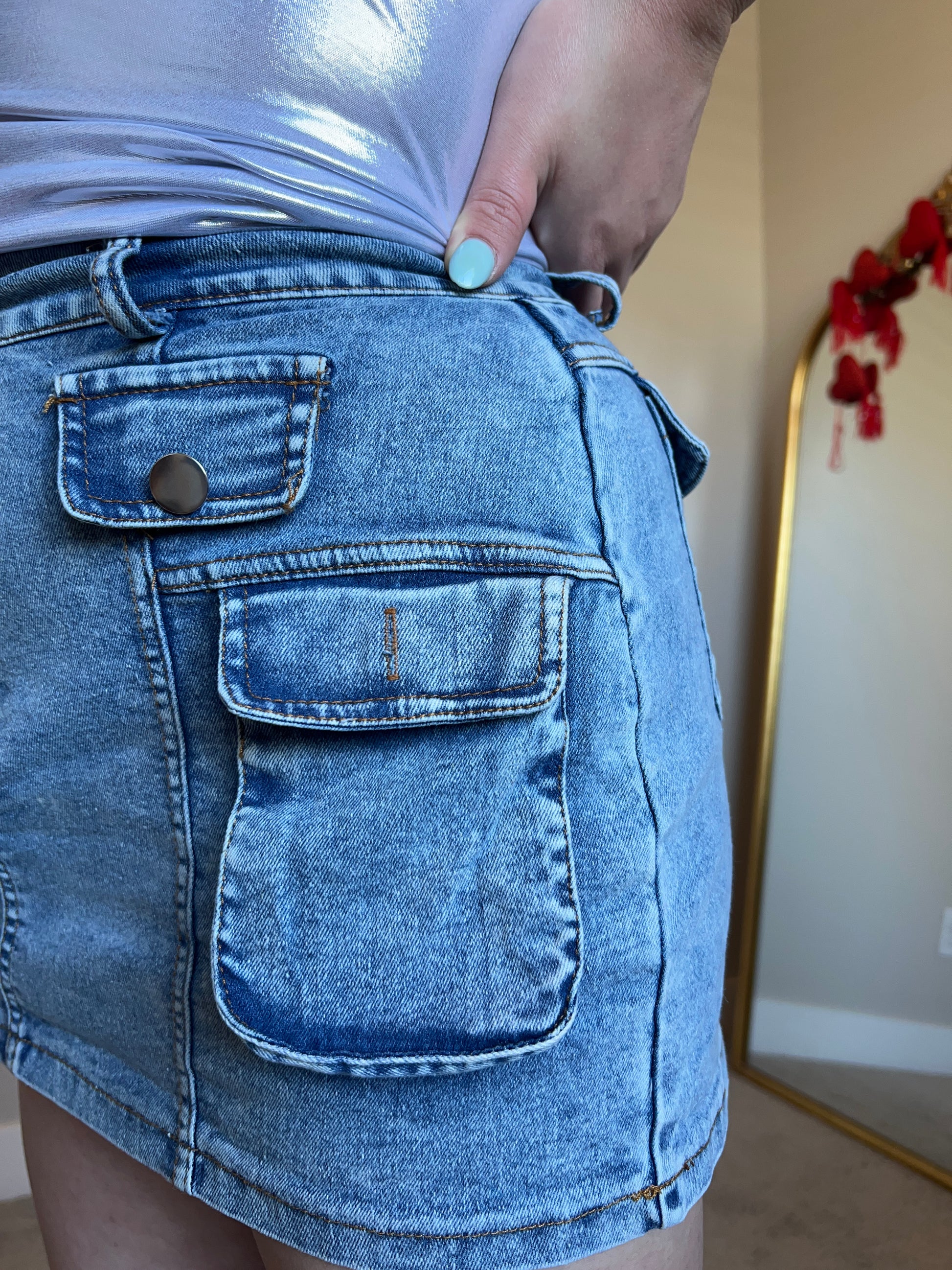 Indulge in the must-have summer staple: our high waisted Mini skirt with pockets! This versatile piece belongs in every fashionable wardrobe, effortlessly elevating any look. Model wearing size M, we recommend sizing down.